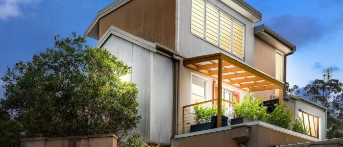 One example is her Newtown Residence, a compact corner-block home designed to maximise light, space, and connection between living areas and outdoor spaces as shown in images.