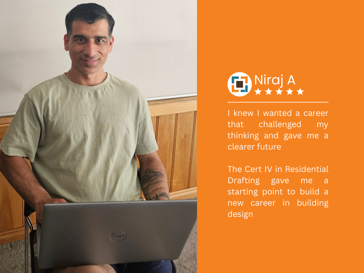 Completing the Cert IV in Residential Drafting gave Niraj something more valuable than a qualification. It gave him direction.
